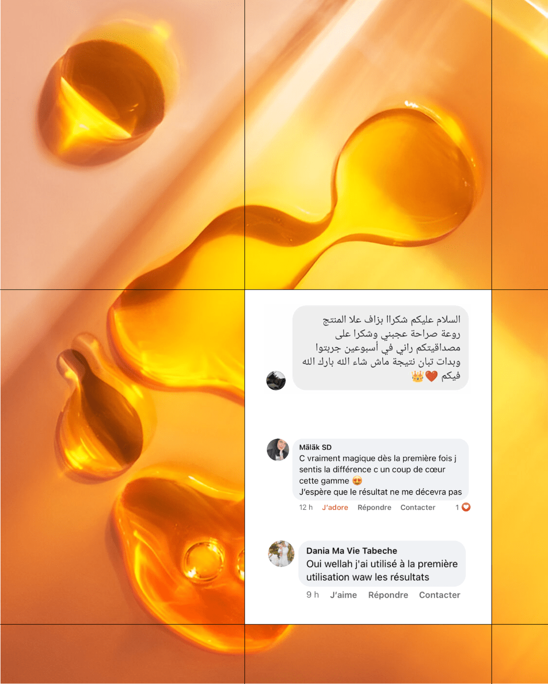 Déposer quelques gouttes sur le visage et le cou, puis tapoter délicatement jusqu’à absorption complète, sans frotter.